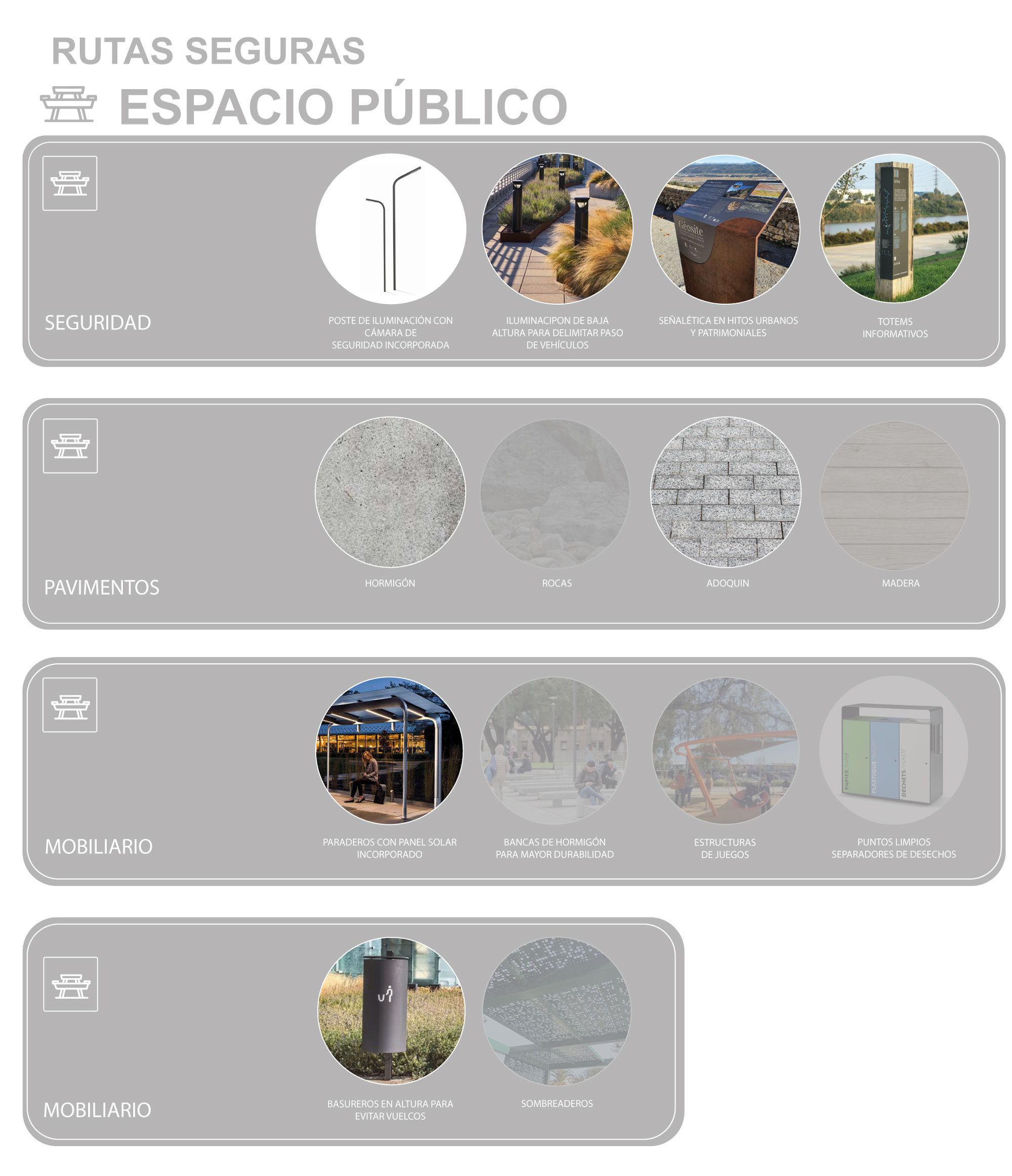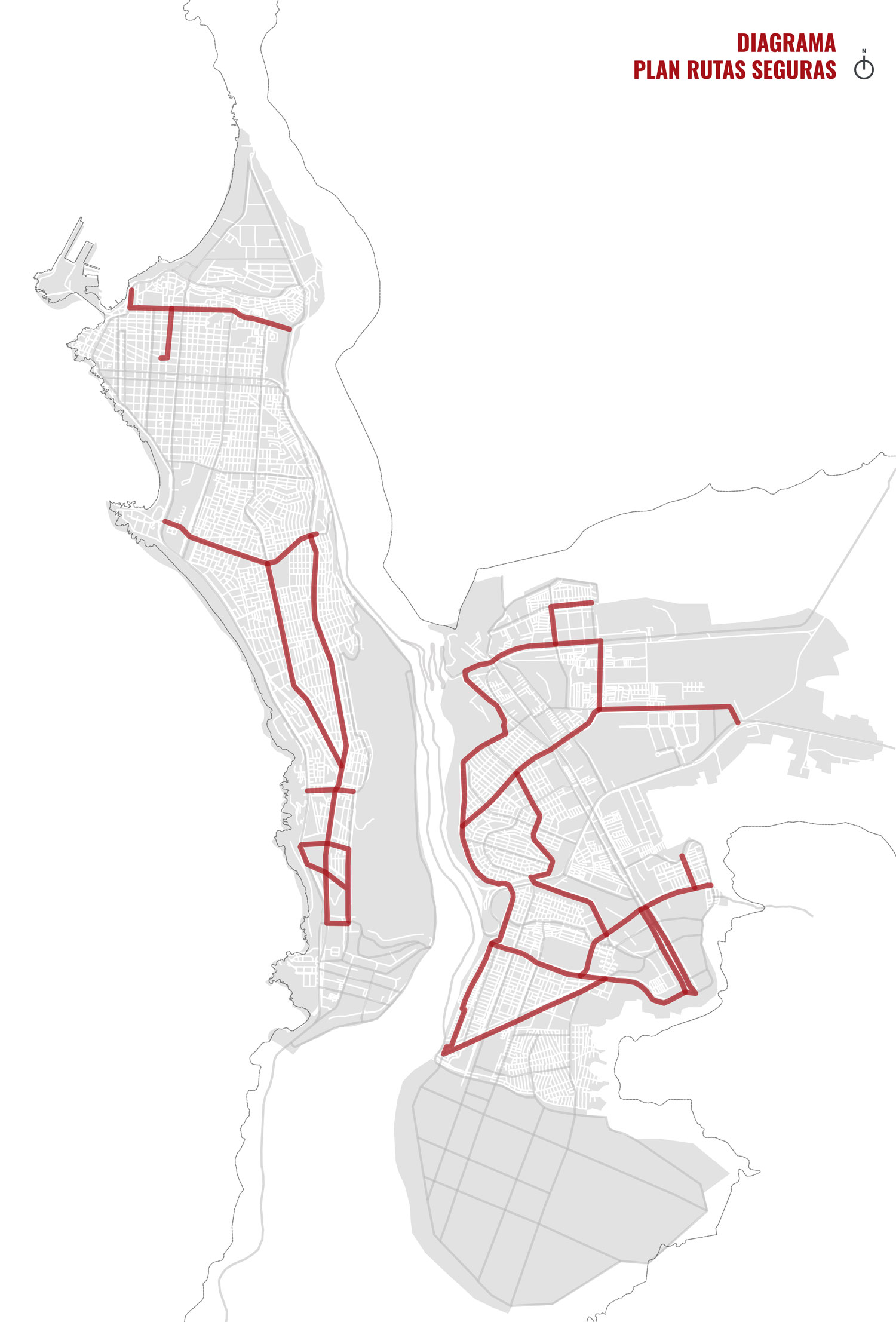 Elaboración de un plan maestro de rutas peatonales estratégicas en ambas comunas, que unifique el diseño e integre un sistema de seguridad para los transeúntes con sistema de cámaras, iluminación, cruces señalizados y pavimentos accesibles.